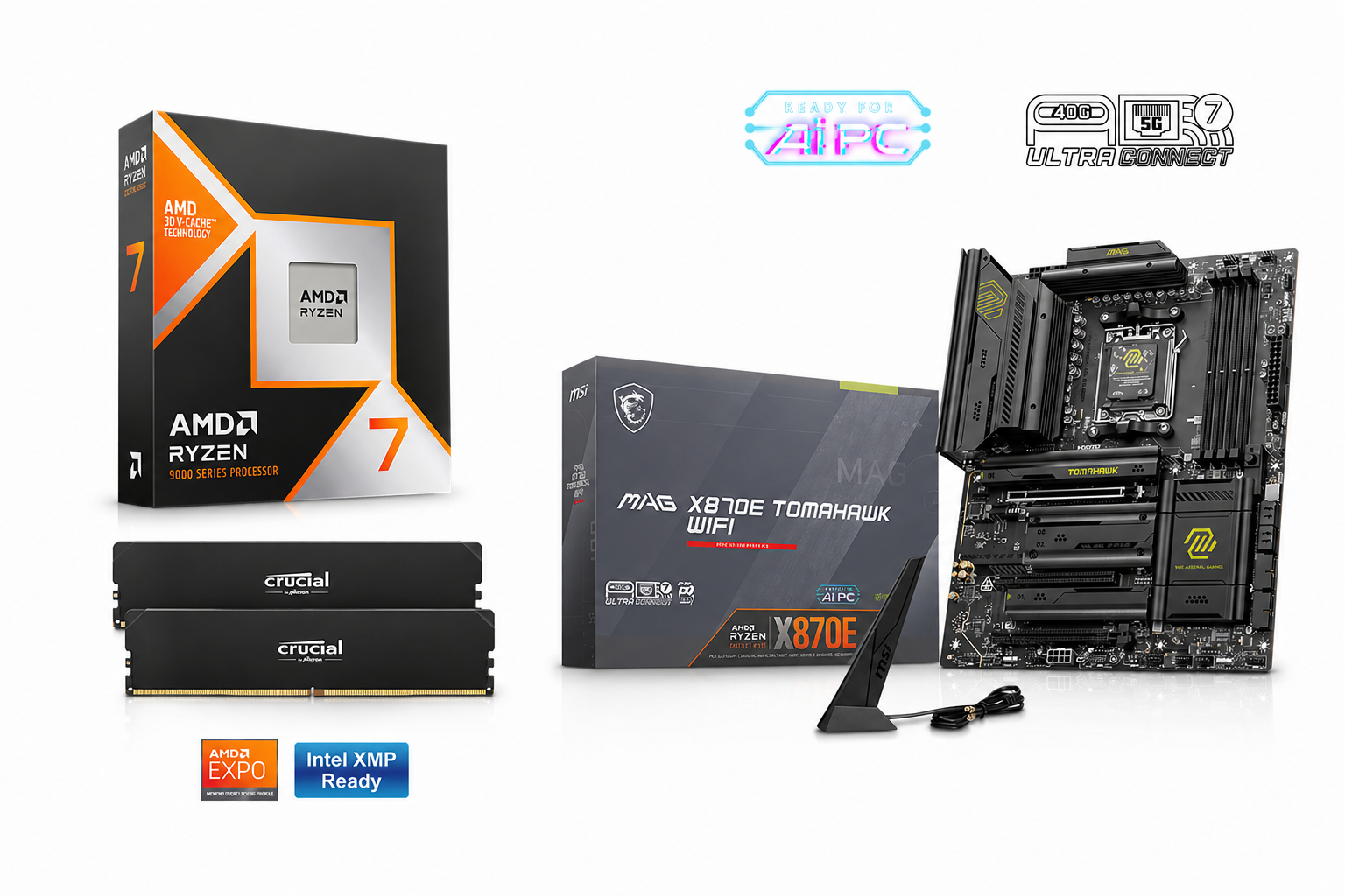 MSI MAG X870E-R7 9850X3D-Crucial 32gb